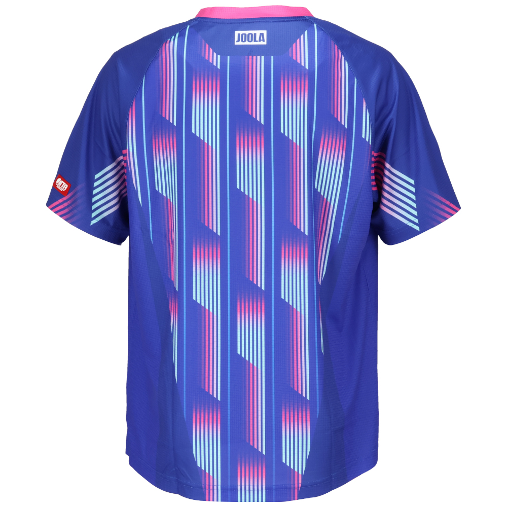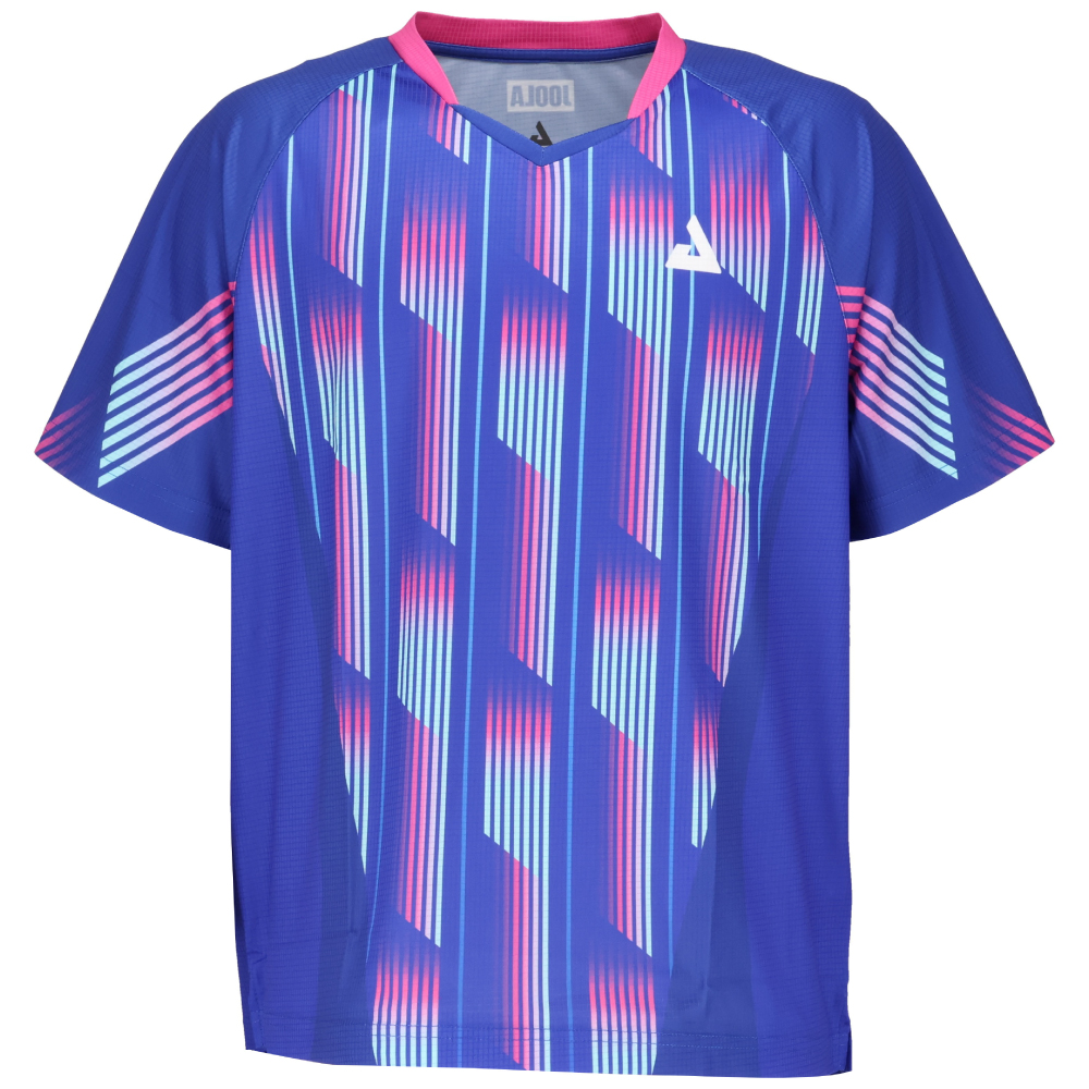 伸縮性のある生地と鮮やかなプリント柄が特徴の日本サイズの男女兼用ゲームシャツです。