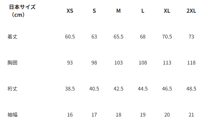 ■サイズ:XS、S、M、L、XL、2XL